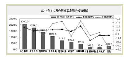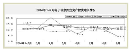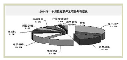 2014年1~9月,電子信息產(chǎn)業(yè)固定資產(chǎn)投資持續(xù)呈趨緩態(tài)勢,電子器件行業(yè)投資持續(xù)回落,家用視聽和信息材料等領(lǐng)域投資仍下滑,電子元件、計算機(jī)和通信行業(yè)投資增速放緩,新開工項目依然不足。主要特點(diǎn)如下: