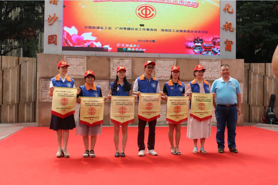 9月24日,海珠區(qū)總工會(huì)在沙園廣重廣場(chǎng)舉辦了“志愿奉獻(xiàn),愛在海珠”海珠區(qū)企業(yè)職工志愿服務(wù)對(duì)接儀式暨迎國(guó)慶公益集市。參會(huì)人員有:省市區(qū)總工會(huì)相關(guān)領(lǐng)導(dǎo)、海珠區(qū)18條街道基層工會(huì)專職副主席、工會(huì)組織員、光華科技志愿服務(wù)隊(duì)及區(qū)規(guī)模企業(yè)志愿服務(wù)隊(duì)。