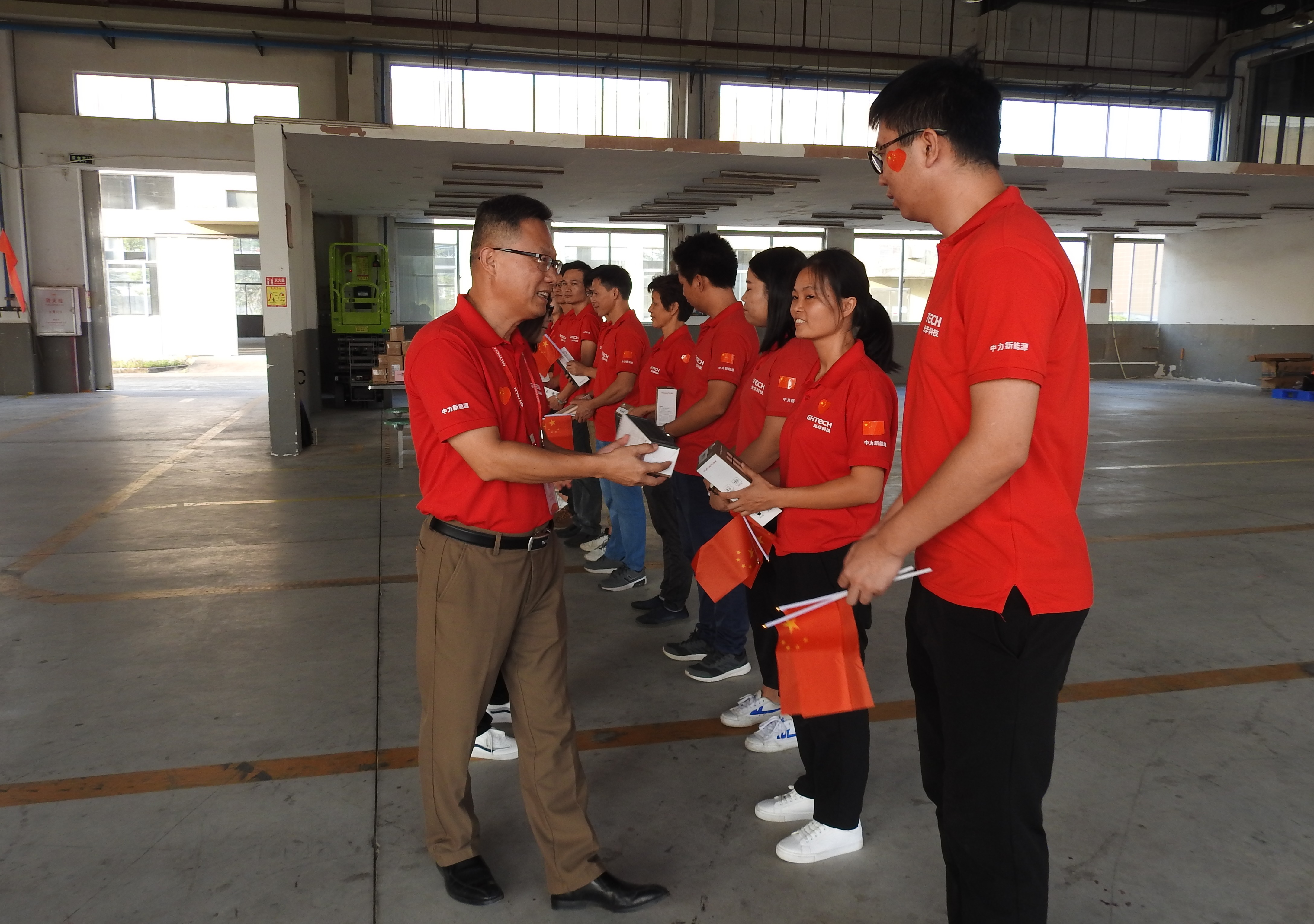 團(tuán)建活動(dòng)如火如荼,珠海市富山管委會(huì)副主任容立雄先生,光華科技董事、副總裁鄭俠先生親臨活動(dòng)現(xiàn)場(chǎng),對(duì)光華科技-珠海中力新能源在國(guó)慶前夕用自己的方式來(lái)慶祝祖國(guó)70華誕表示高度贊揚(yáng)。并與活動(dòng)現(xiàn)場(chǎng)的所有人員一起進(jìn)行了莊嚴(yán)肅穆的唱國(guó)歌儀式。我們所有伙伴都用心吶喊“祖國(guó)母親,生日快樂(lè)”。