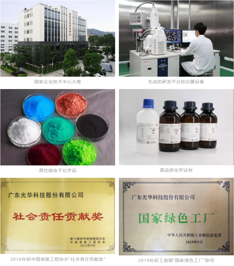 創(chuàng)新驅(qū)動,綠色發(fā)展。光華科技深耕化工行業(yè)40年來,始終堅持以市場為導向,應(yīng)行業(yè)發(fā)展及市場需求不斷進行技術(shù)創(chuàng)新,為全球客戶提供優(yōu)質(zhì)產(chǎn)品及服務(wù),積極推動專用化學品行業(yè)的進步。在創(chuàng)新驅(qū)動方面,光華科技視研發(fā)創(chuàng)新為企業(yè)之本,組建起了完善的研發(fā)體系,引進國際化高端人才及技術(shù),開展5G及其他前沿技術(shù)/產(chǎn)品的研發(fā),助力客戶提升競爭優(yōu)勢。目前,光華科技已擁有2個國家級科研平臺、4個省部級科研平臺、10余所產(chǎn)學研及產(chǎn)業(yè)鏈合作單位,承擔/參與了國家及省部級項目30余項,發(fā)明專利超170件,科研成果獲得國家及省部級獎項15 項。綠色發(fā)展方面,光華科技按照循環(huán)經(jīng)濟的社會發(fā)展路線,對公司生產(chǎn)經(jīng)營實施循環(huán)經(jīng)濟戰(zhàn)略,2016年公司獲得“社會責任貢獻獎”榮譽,2018年獲得“廣東省省級清潔生產(chǎn)企業(yè)”、2019年9月獲得“廣東省節(jié)水型企業(yè)”,同年獲得工信部“國家綠色工廠”認定,推動行業(yè)可持續(xù)發(fā)展。