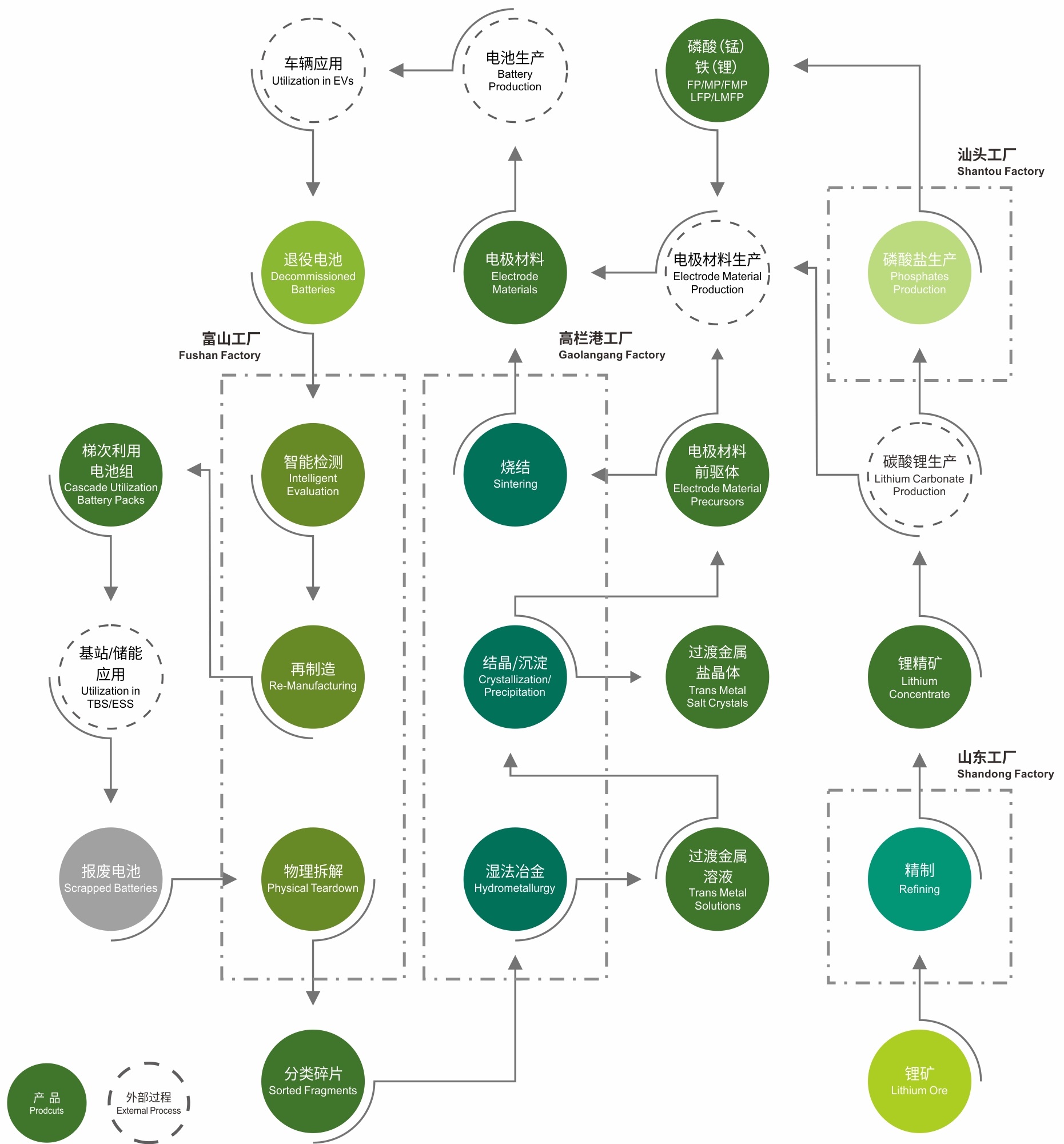 光華科技作為全國范圍內(nèi)符合《新能源汽車廢舊動力蓄電池綜合利用行業(yè)規(guī)范條件》的五家單位之一,國家溯源平臺再生利用和梯級利用企業(yè),廣東省動力蓄電池回收利用試點(diǎn)單位,掌握“動力電池梯級利用-拆解分類利用-材料修復(fù)-有價金屬回收-材料制造”全生命周期價值鏈技術(shù)和工程化能力,為業(yè)界提供具有國際先進(jìn)水平的退役動力電池全生命周期整體服務(wù)方案。
