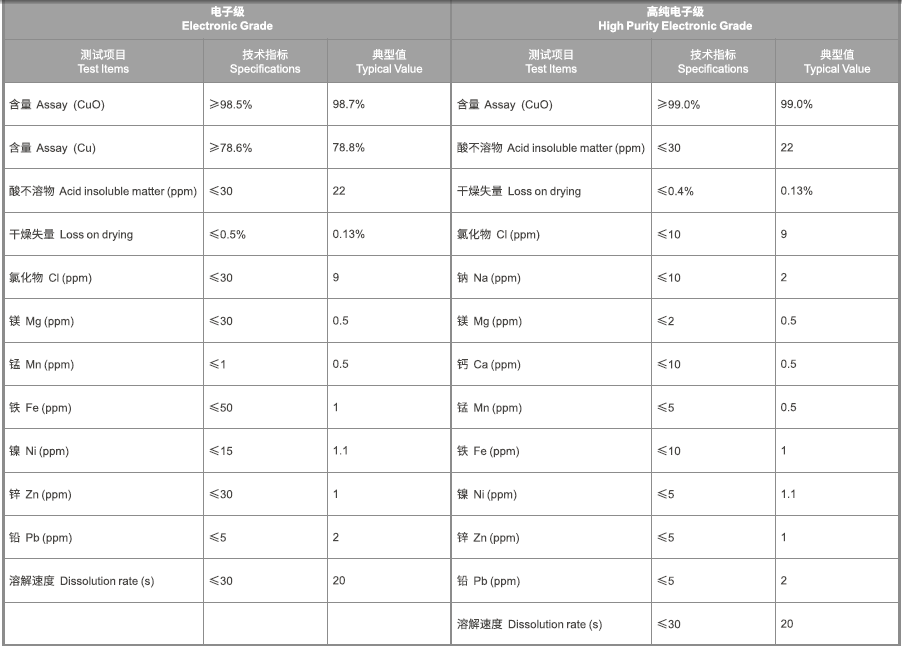 Application:It is mainly used for acid copper-plating process of high-end circuit boards (HDI, FPC and IC carrier boards etc.) with insoluble anodes. For other industries, it can be used for magnetic material, electronic elements, fireworks and catalyst etc.
