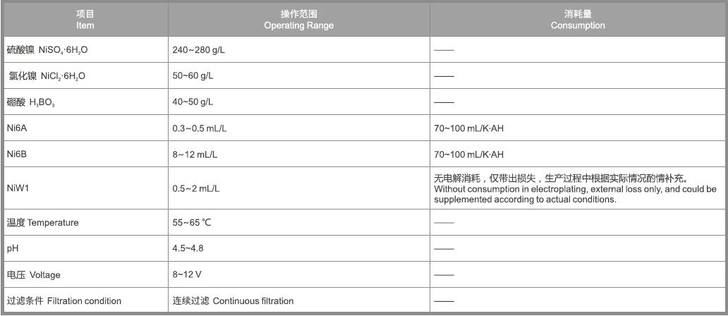 Ni6B :俗稱輔光劑,也稱柔軟劑。消除鍍層內(nèi)應(yīng)力,促進(jìn)鍍層均勻分布。 Ni6B不足時(shí),低電流密度區(qū)發(fā)暗,鍍層脆性大;Ni6B過量 時(shí),可能造成后續(xù)鍍鉻困難等問題難;