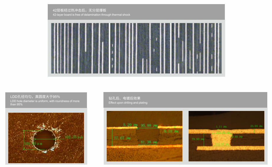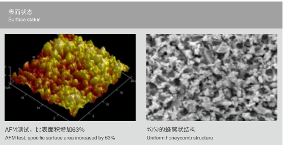 棕化是銅面在微蝕反應(yīng)中,緩蝕添加劑會(huì)選擇性吸附在銅表面,從而在銅表面形成均勻的蜂窩狀微觀結(jié)構(gòu),增加比表面積,使壓后銅面與樹(shù)脂材料有良好的結(jié)合力。經(jīng)過(guò)LDD棕化處理后形成的銅表面及均勻的蜂窩狀結(jié)構(gòu),有利于吸收激光能量,能應(yīng)用于激光鉆孔前處理。